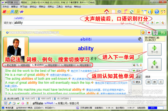 在单词修正的同时可以随时查看输入的单词的参考信息,并进行认知学习: