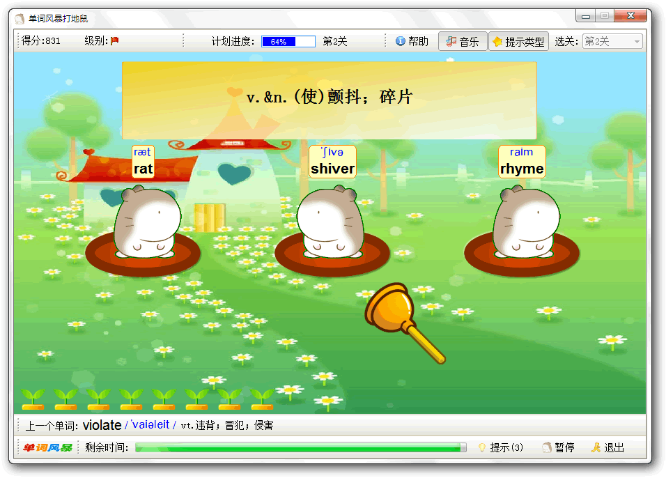 通过玩轻松有趣的打地鼠游戏记单词,锻炼记单词的反应能力。
