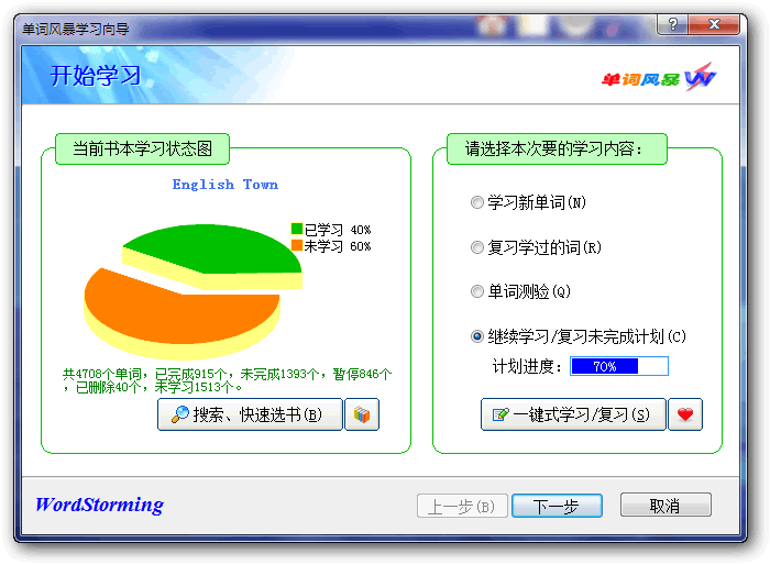 可以通过向导找出不熟悉的、容易出错的单词进行复习